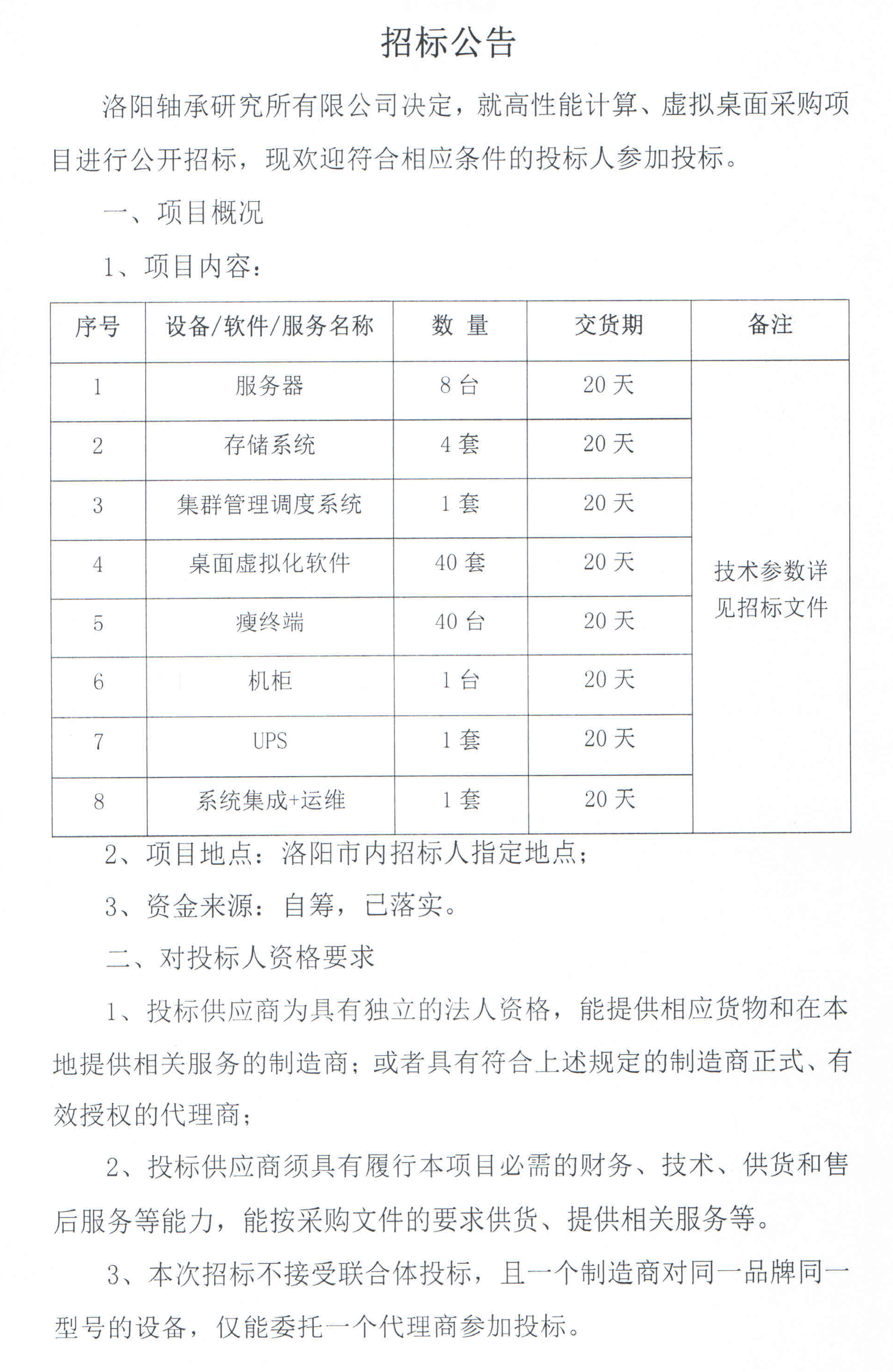 卧式动乎衡仪等设备招标公告