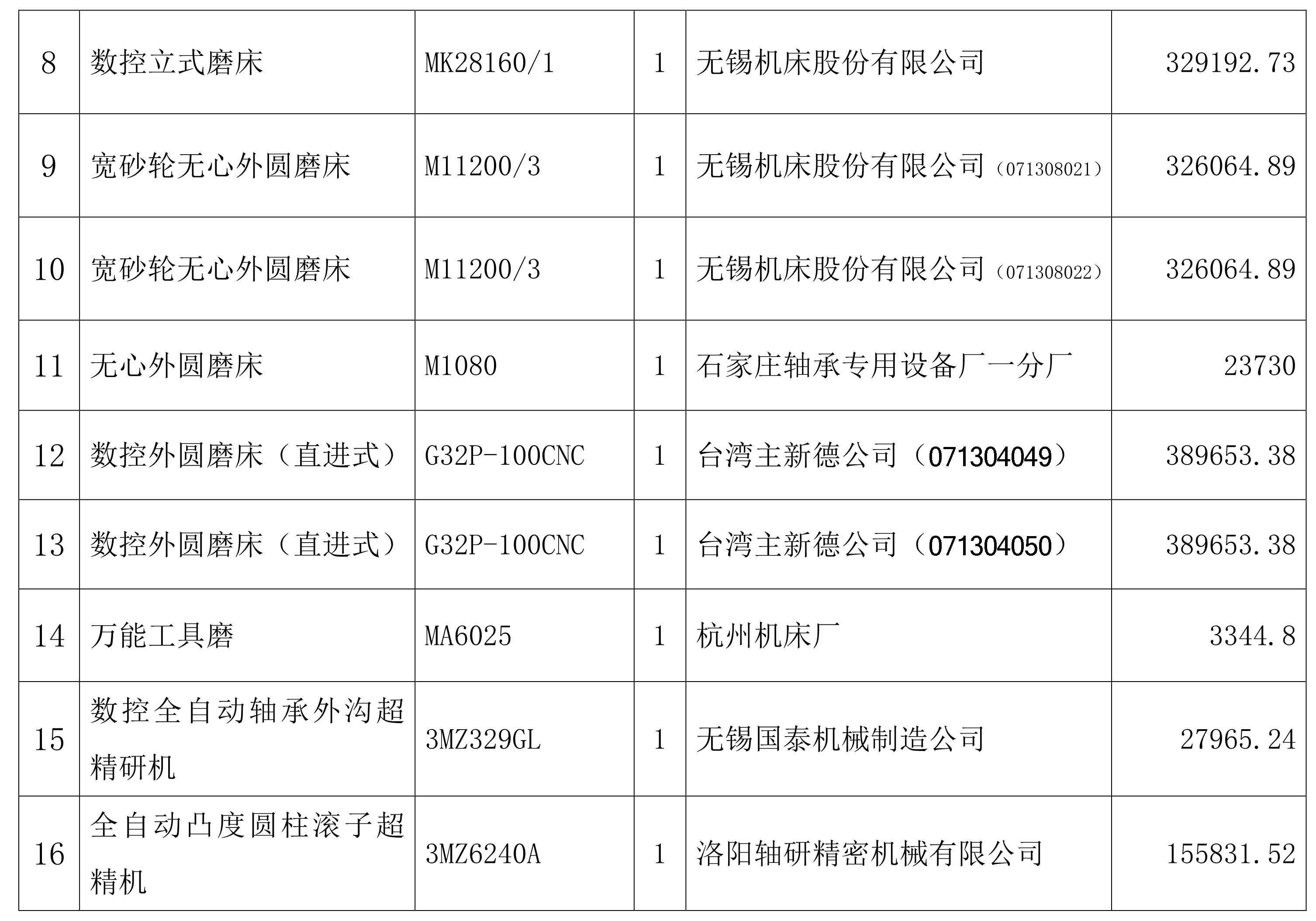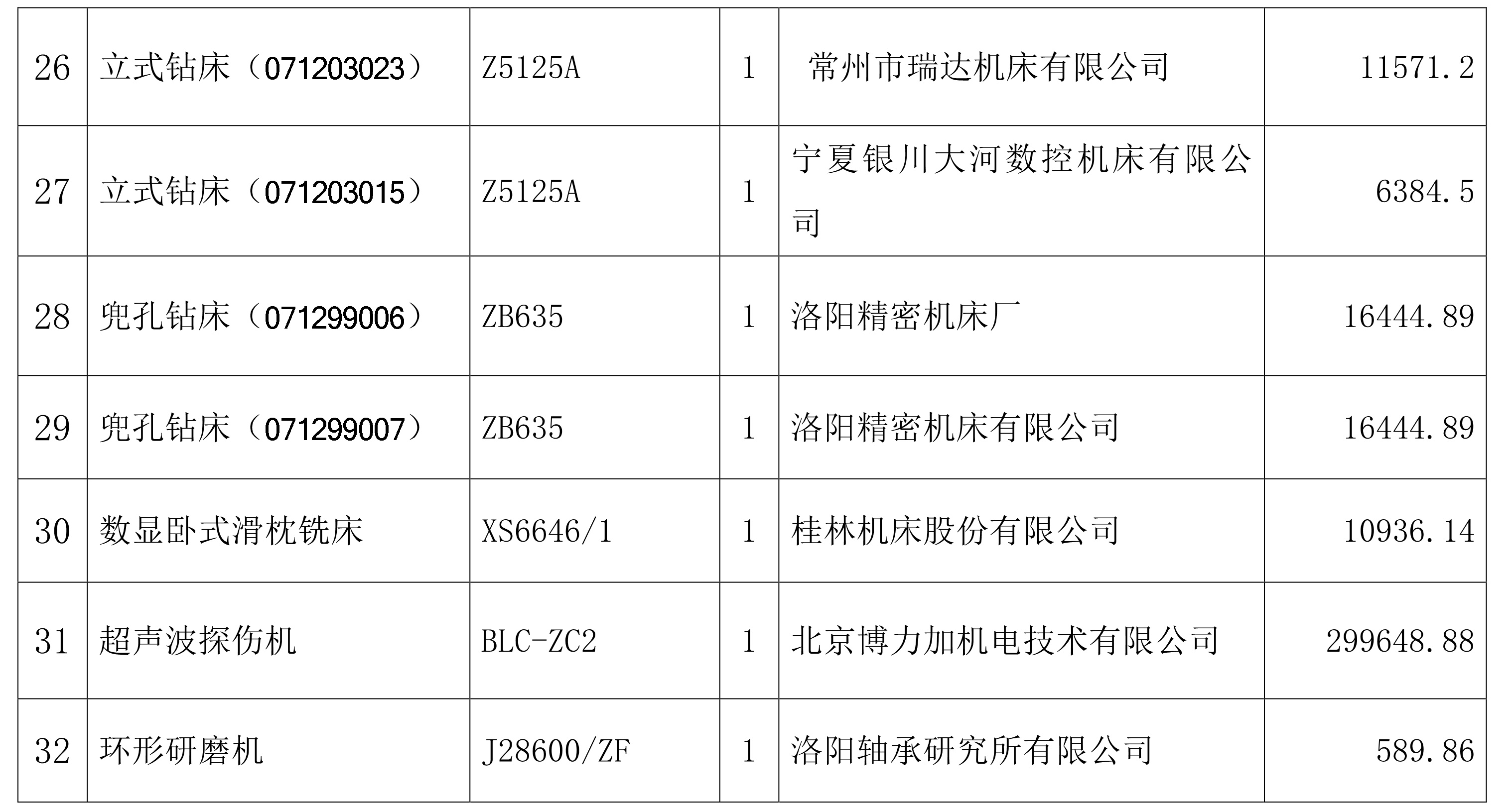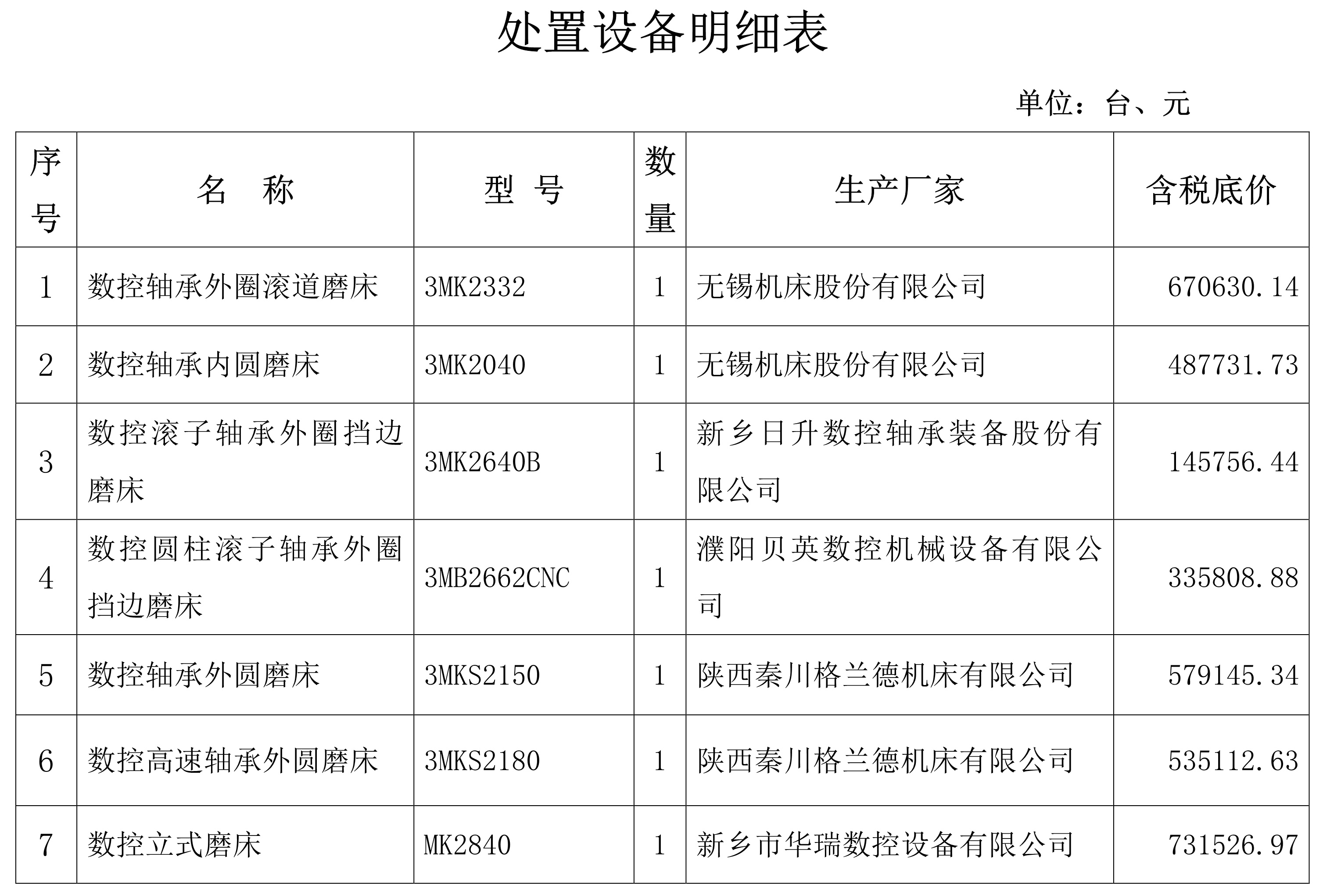 洛阳U8国际轴承研究所有限公司拟采用公开招标的方式转让一批(32台)闲置设备,现公告如下: