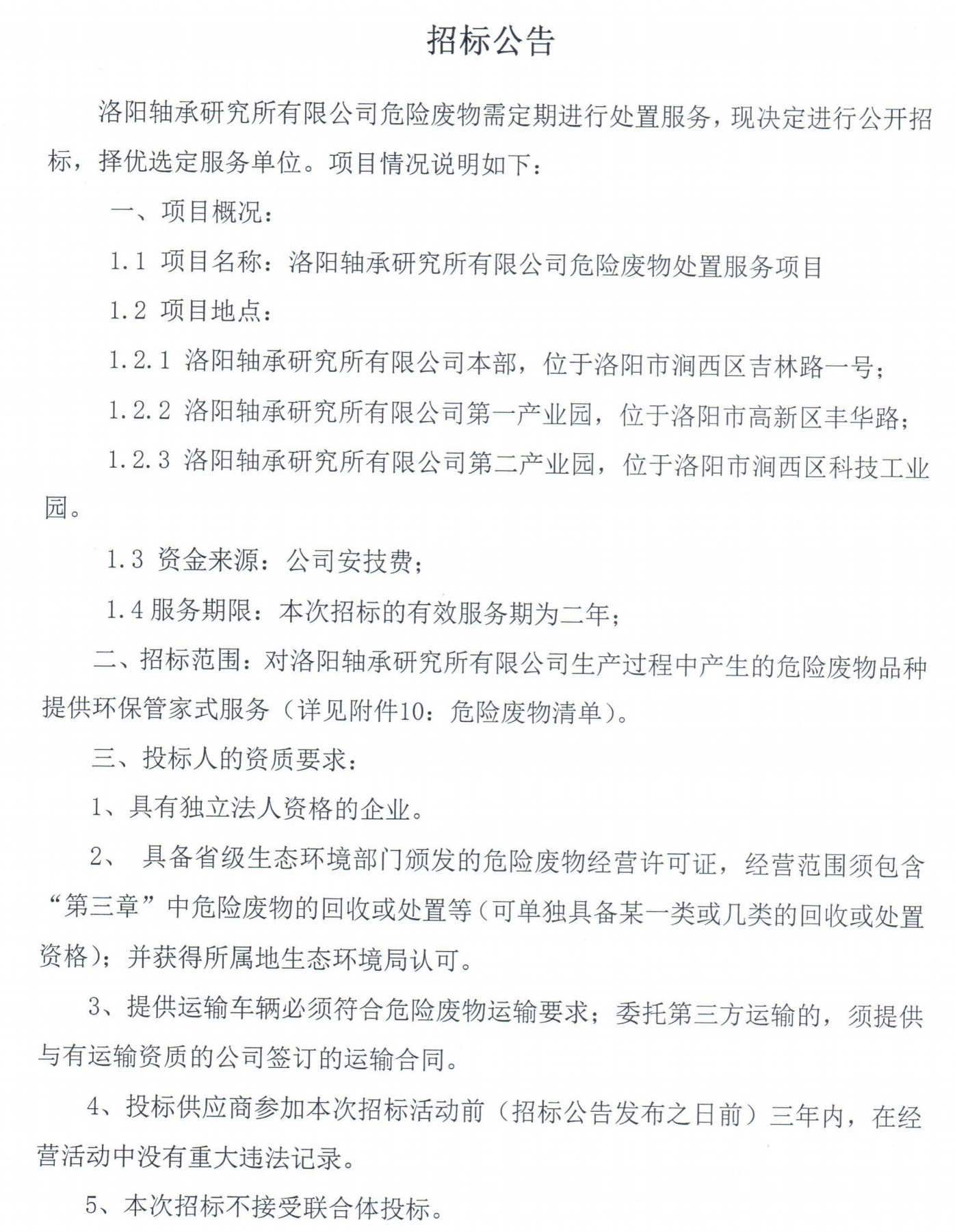空压机设备维护保养项目招标公告