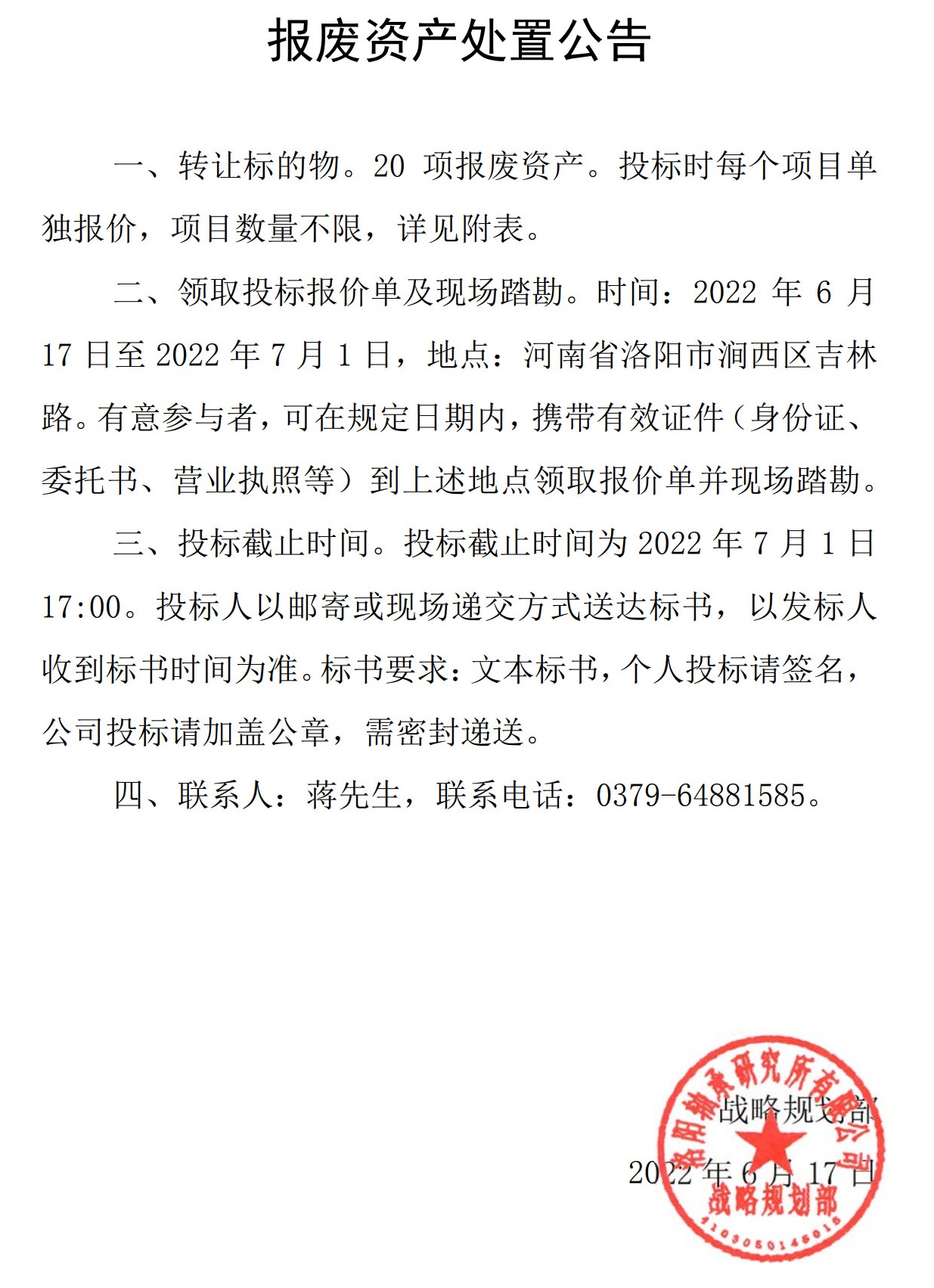 报废资产处置公告