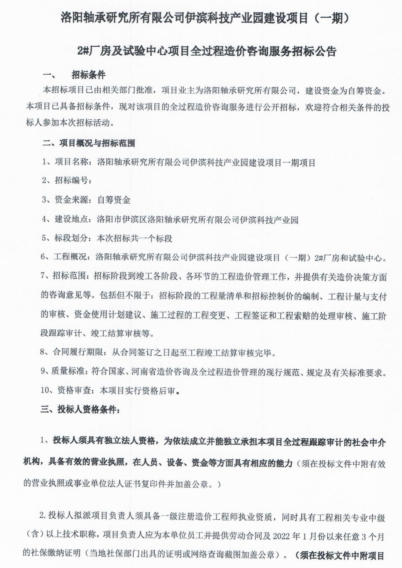 洛阳U8国际轴承研究所有限公司伊滨科技产业园建设项目项目(一期)2#厂房及试验中心全过程造价咨询服务评标结果公示