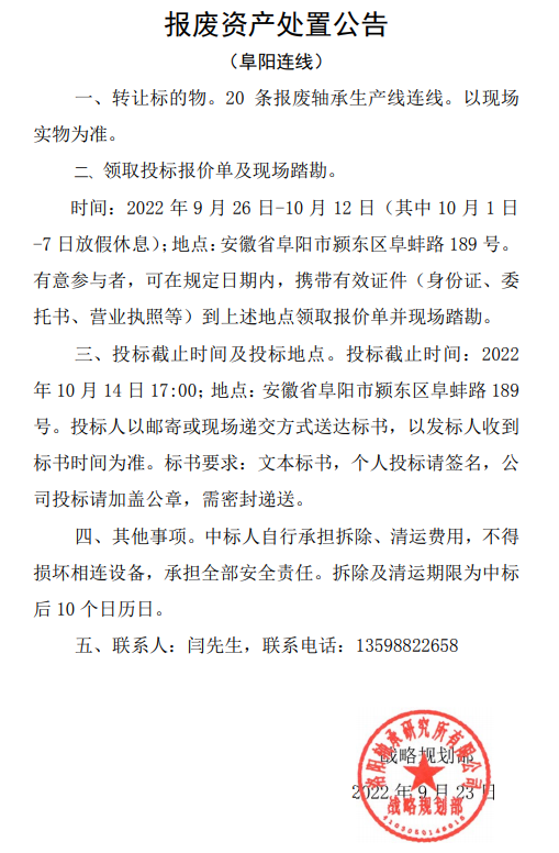 闲置设备资产处置公告(2022-3)
