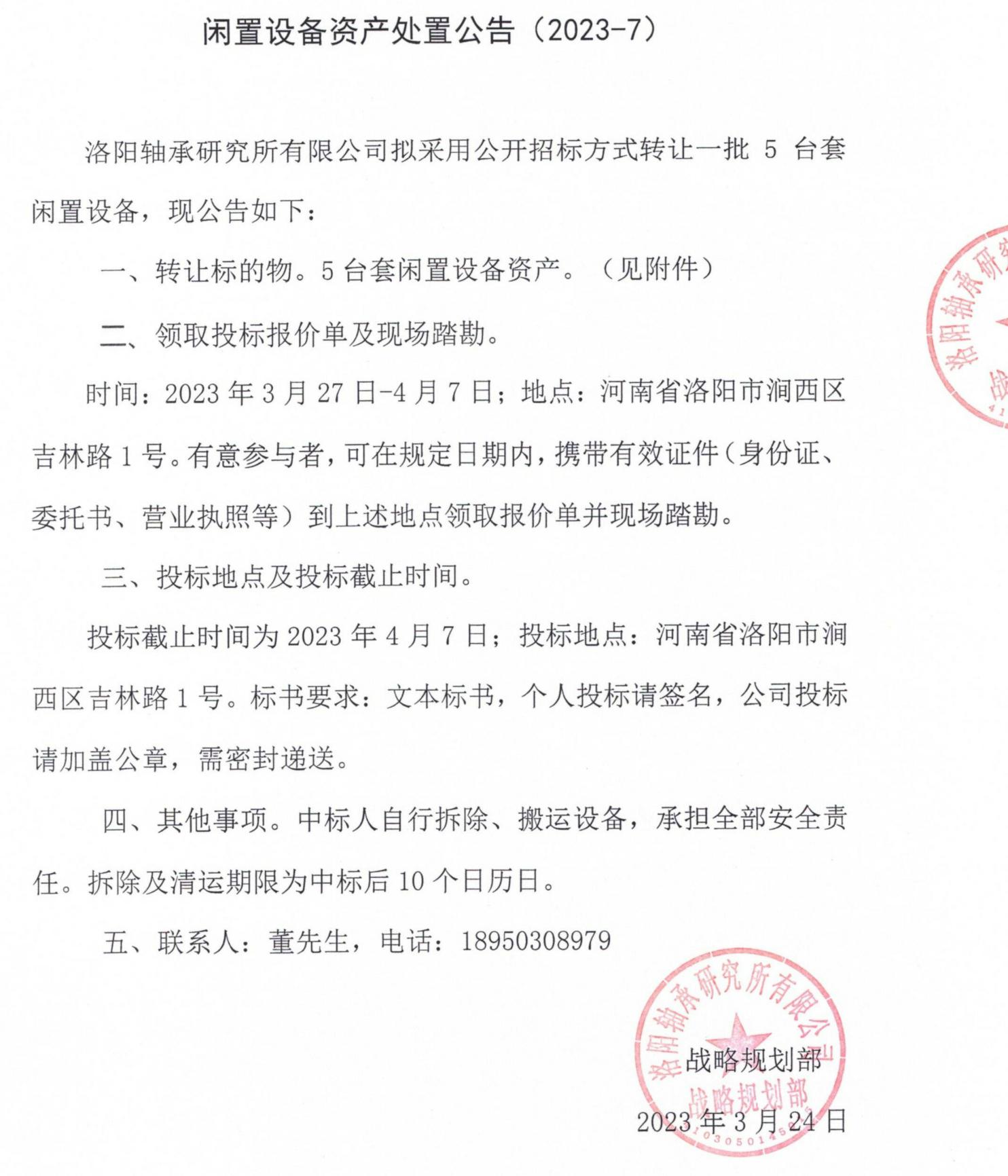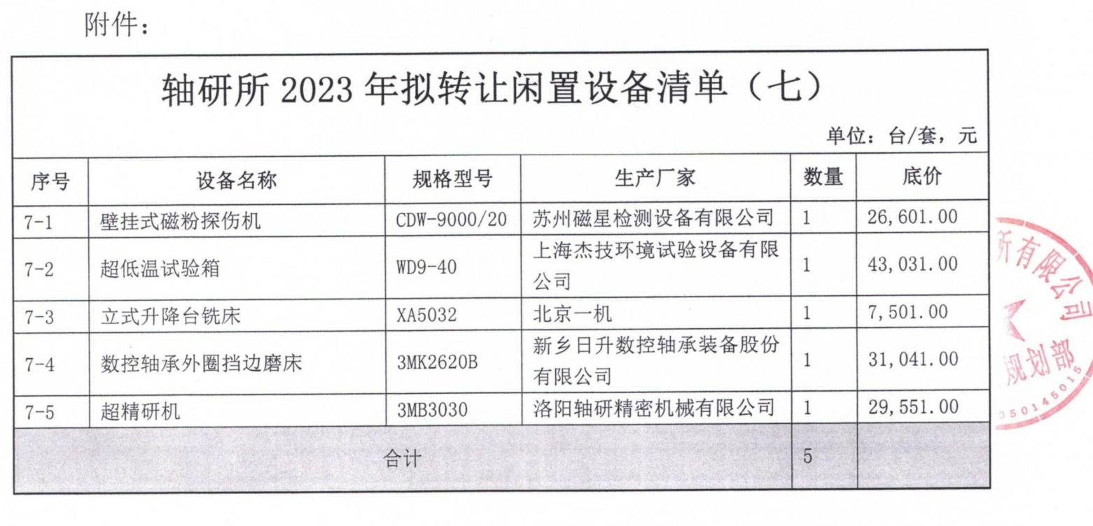 闲置设备资产处置公告(2023-6)