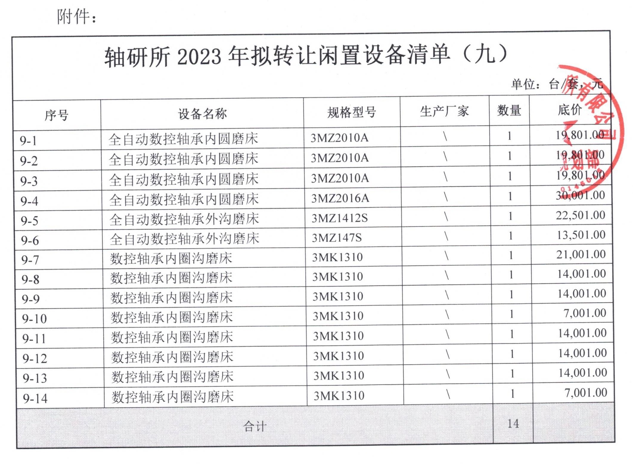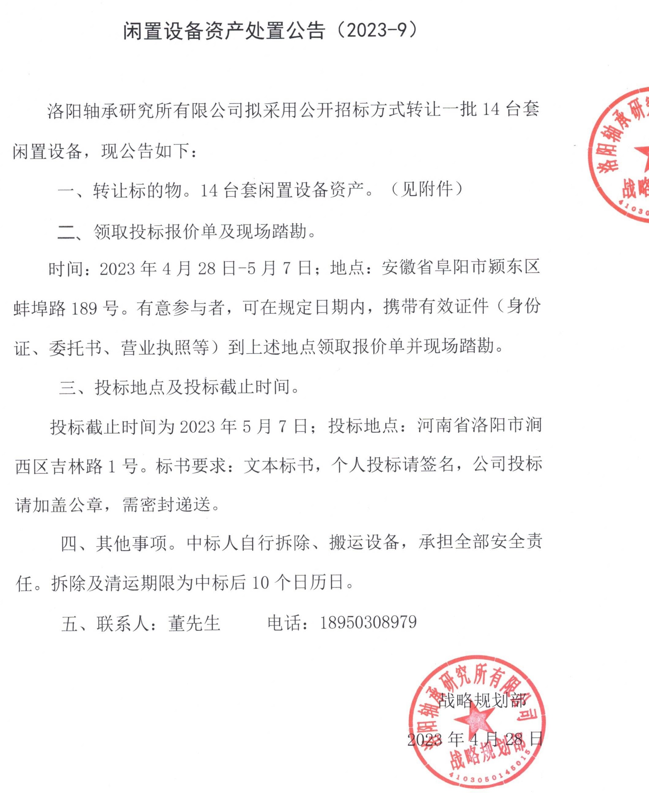 闲置设备资产处置公告(2023-10)