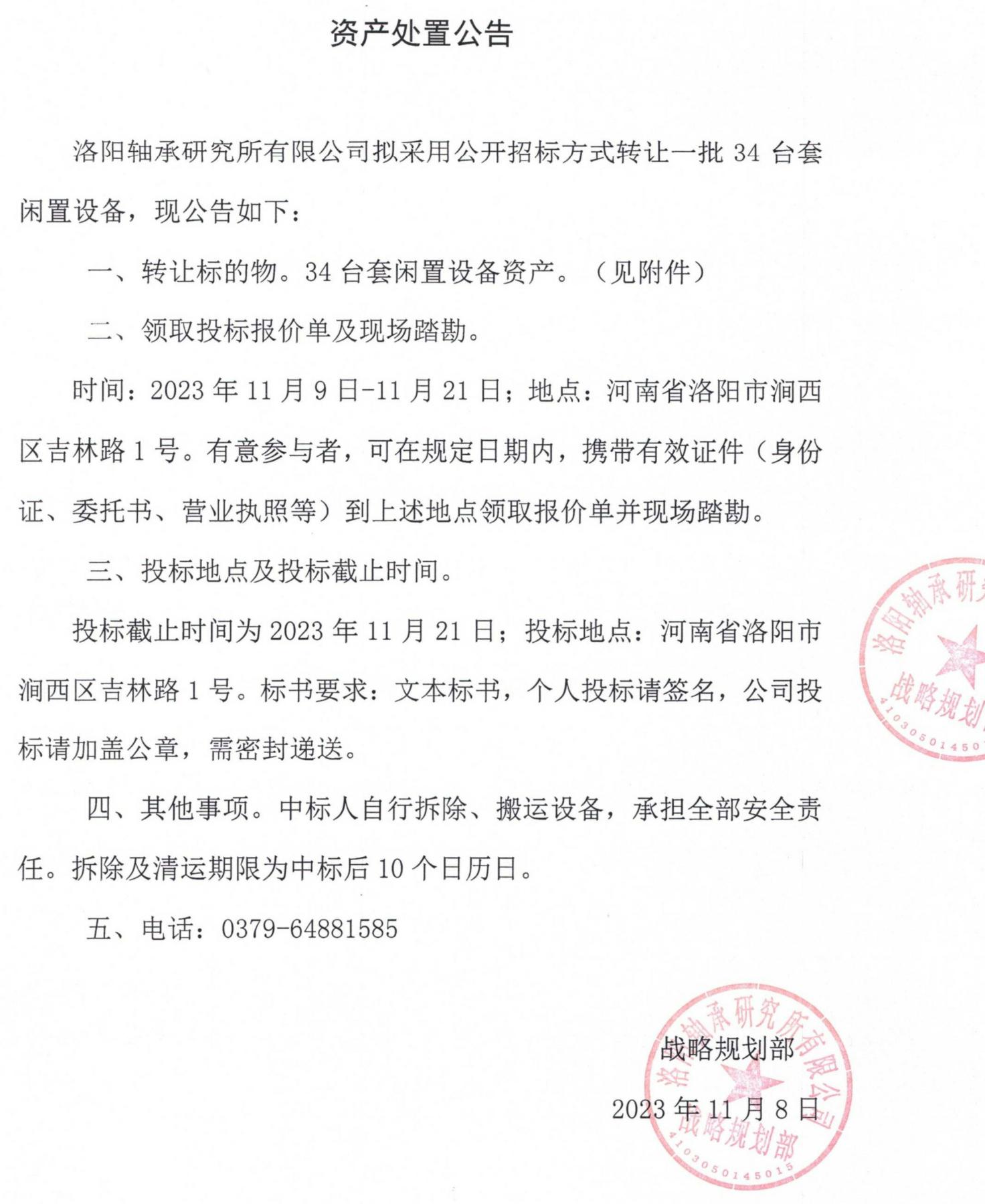 闲置设备资产处置公告(2023-28)