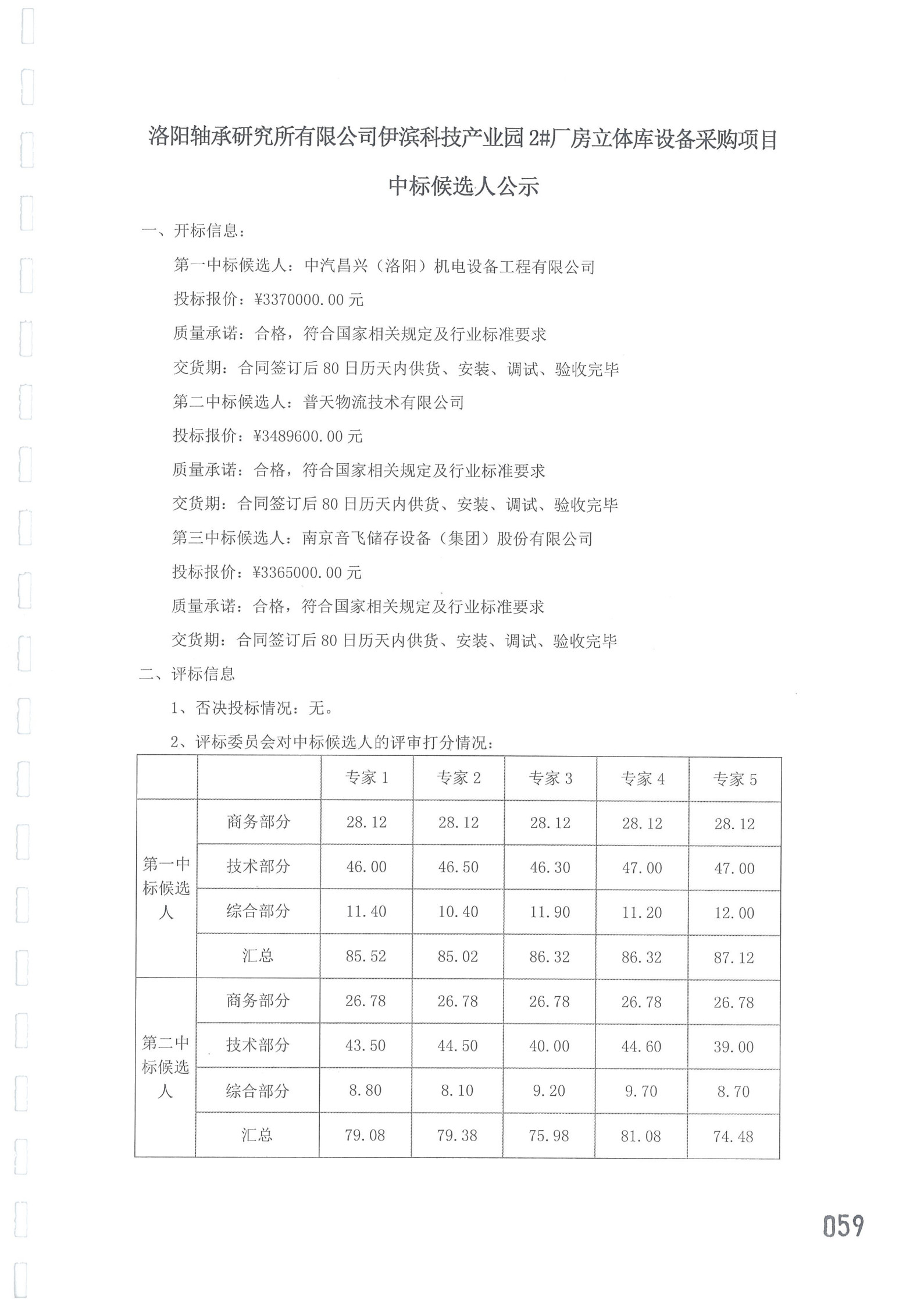 洛阳U8国际轴承研究所有限公司伊滨科技产业园2#厂房立体库设备采购项目中标公告