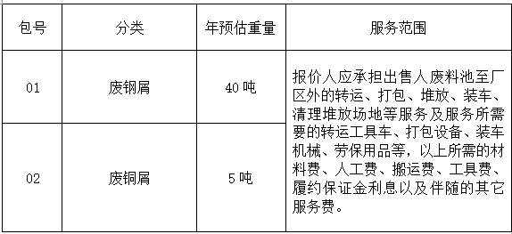 3.2 报价人经营范围须废旧金属的回收、销售或金属冶炼、铸造、生产等。