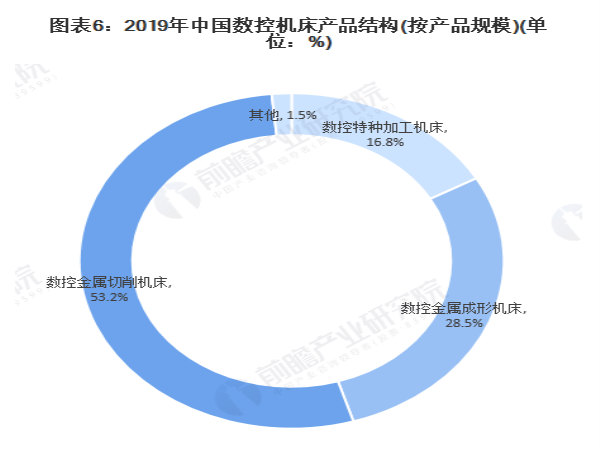 发展数控机床智能化,可从数控机床的各细分产品出发。从数控机床产品结构看,中国数控机床产品比较多的为数控金属切削机床,占比达到53.2%。